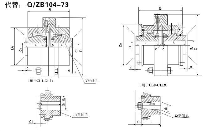 CL型齒式聯(lián)軸器的參數(shù)及主要尺寸:(JB/ZQ 4218-86) mm