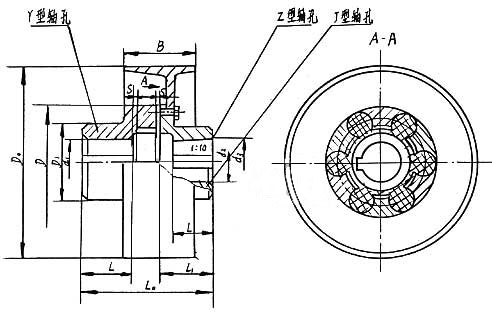 MLL-I(LMZ-I)型分體式制動(dòng)輪梅花形彈性聯(lián)軸器的參數(shù)及主要尺寸:(GB/T 5272-85) mm